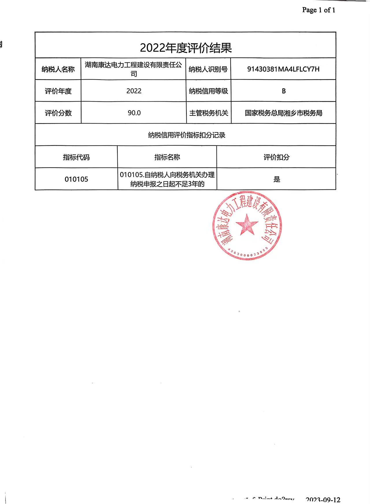 企業(yè)納稅信用等級報告: