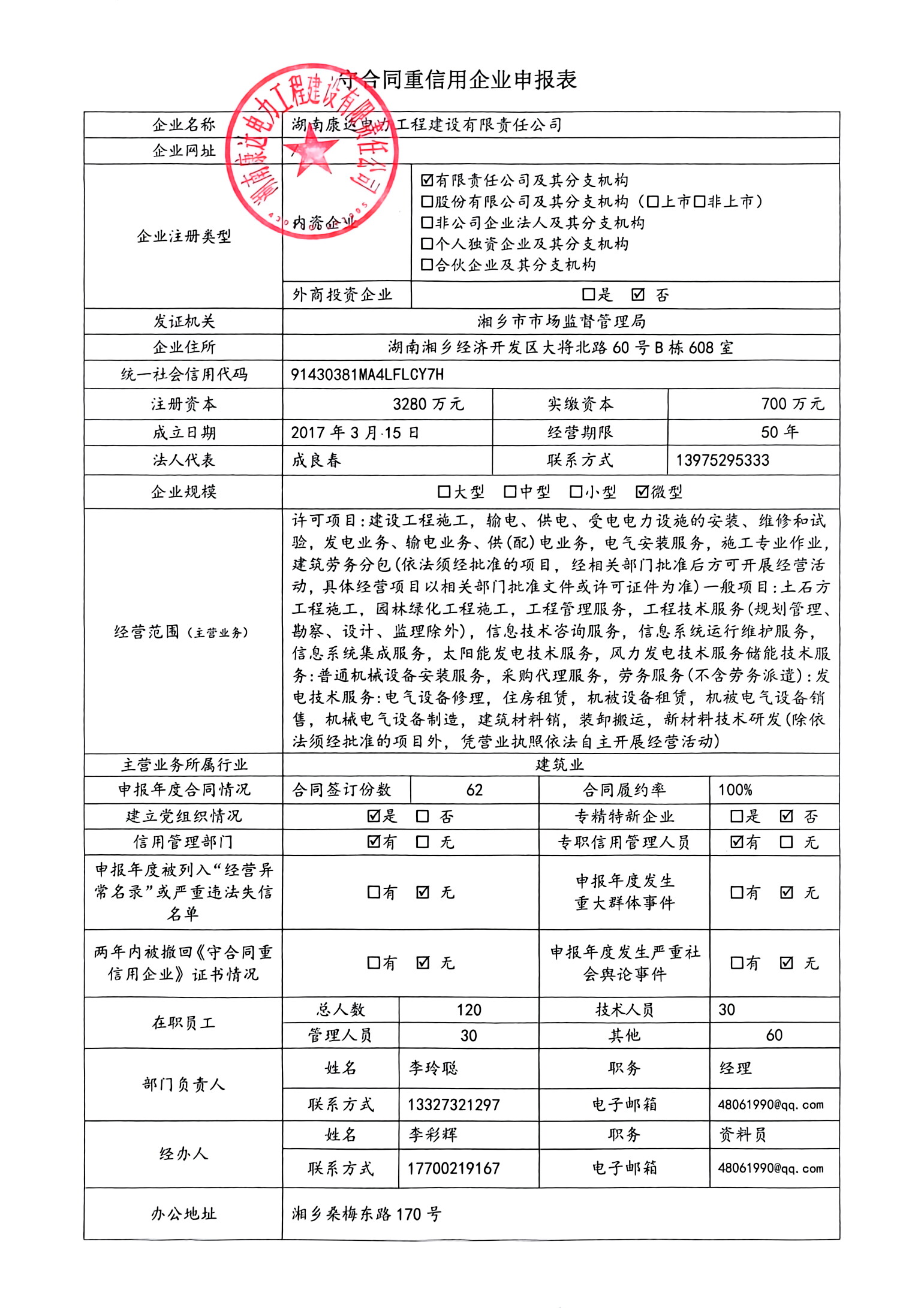 本企業(yè)根據(jù)《湘潭市守合同重信用企業(yè)申報規(guī)定》等編制 2024 年度企業(yè)信用報告書,并保證本報告書內(nèi)容真實、準(zhǔn)確、完整。