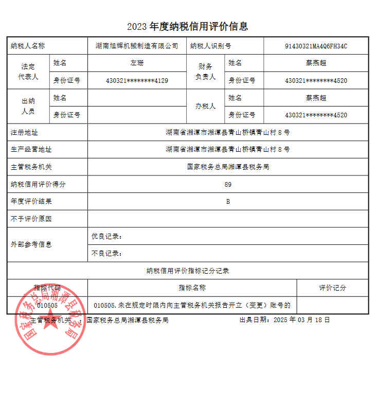 企業(yè)納稅信用等級(jí)報(bào)告: 旭輝納稅信用報(bào)告.png