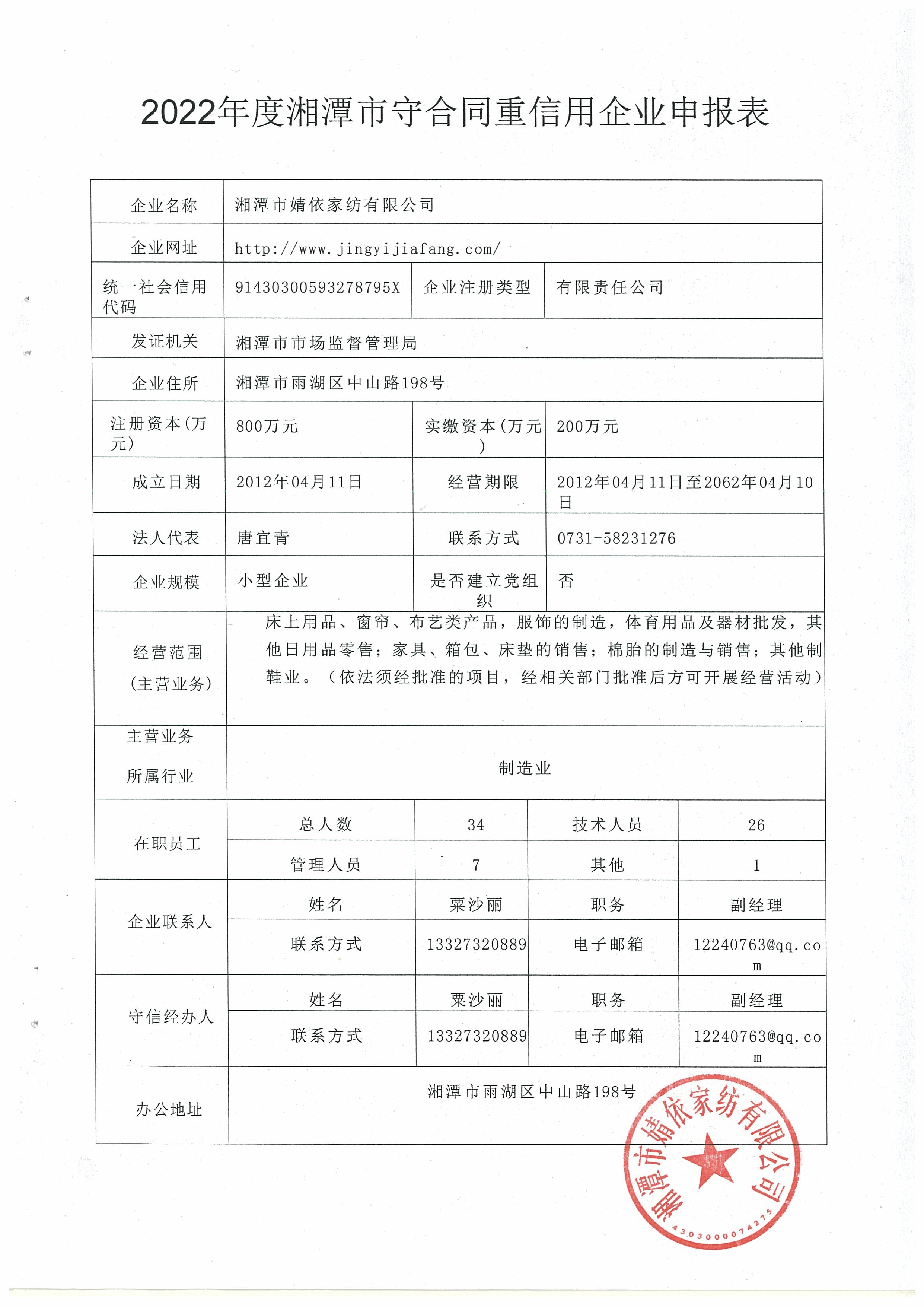 本企業(yè)根據(jù)《湘潭市守合同重信用企業(yè)申報(bào)規(guī)定》等編制 2022 年度企業(yè)信用報(bào)告書(shū),并保證本報(bào)告書(shū)內(nèi)容真實(shí)、準(zhǔn)確、完整。