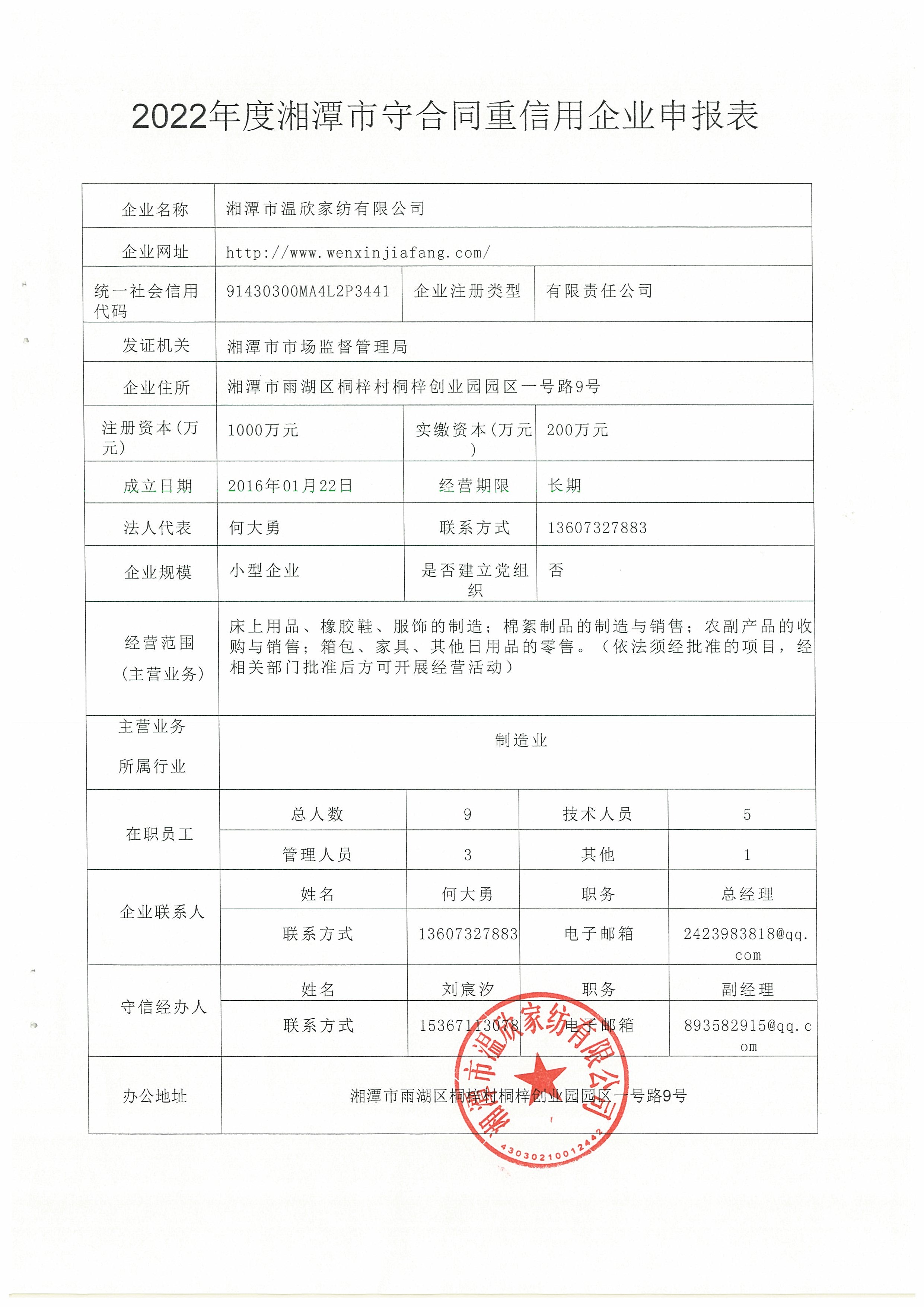 本企業(yè)根據(jù)《湘潭市守合同重信用企業(yè)申報規(guī)定》等編制 2022 年度企業(yè)信用報告書,并保證本報告書內(nèi)容真實、準確、完整。