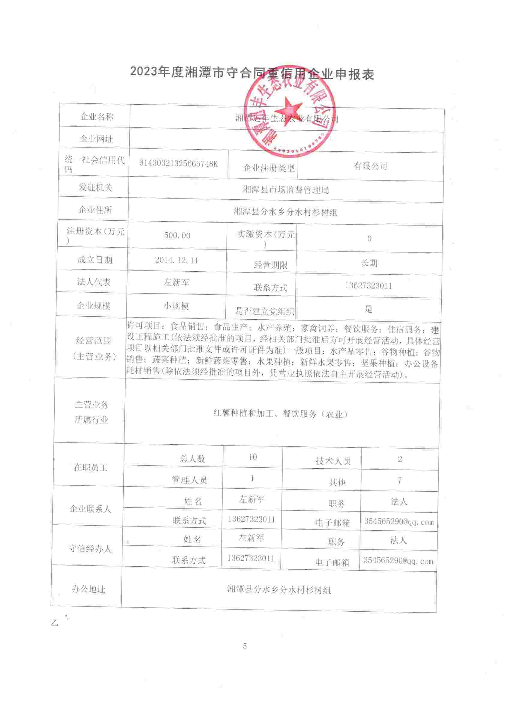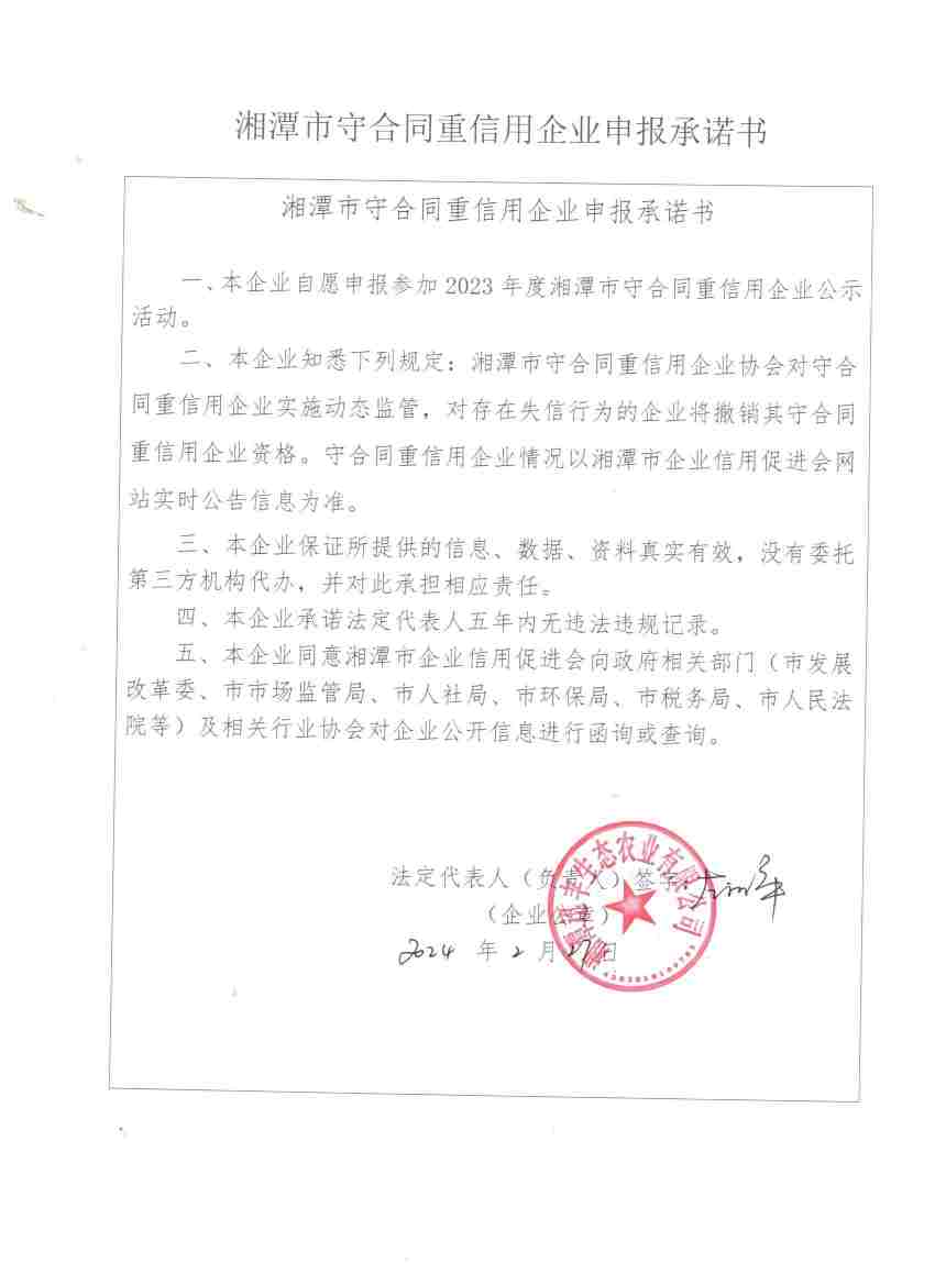 本企業(yè)根據(jù)《湘潭市守合同重信用企業(yè)申報規(guī)定》等編制 2023 年度企業(yè)信用報告書,并保證本報告書內(nèi)容真實、準確、完整。